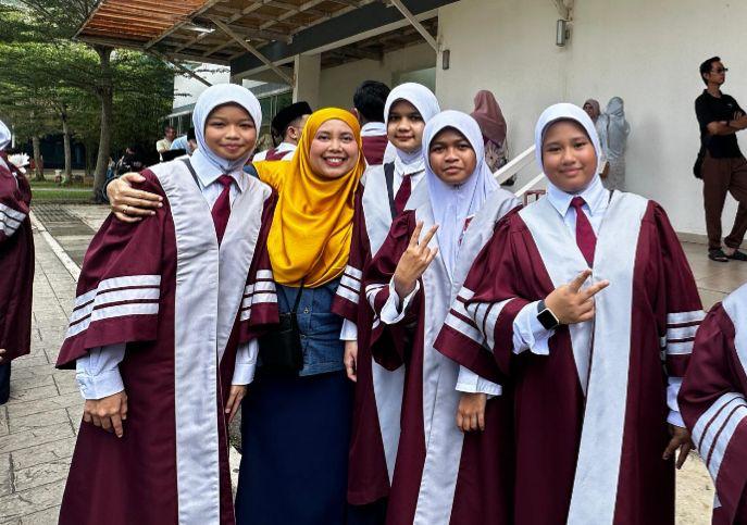 MBPK KUP yang menghadiri majlis graduasi bergambar bersama guru sebagai tanda kejayaan mereka.